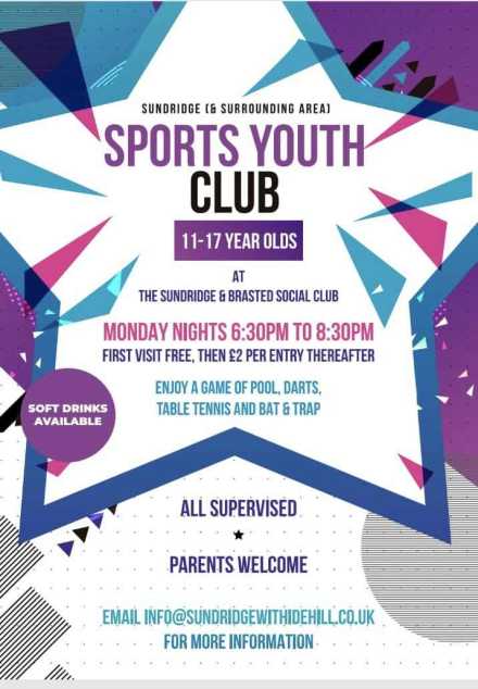The club is proud to be hosting a supervised sports youth club where children can play various games and sports in a fun and safe environment. Parents also welcome! Please email info@sundridgewithidehill.co.uk for more information.